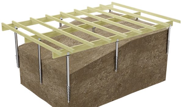• Pieux ancrés profondément (2 à 6 mètres selon sol)